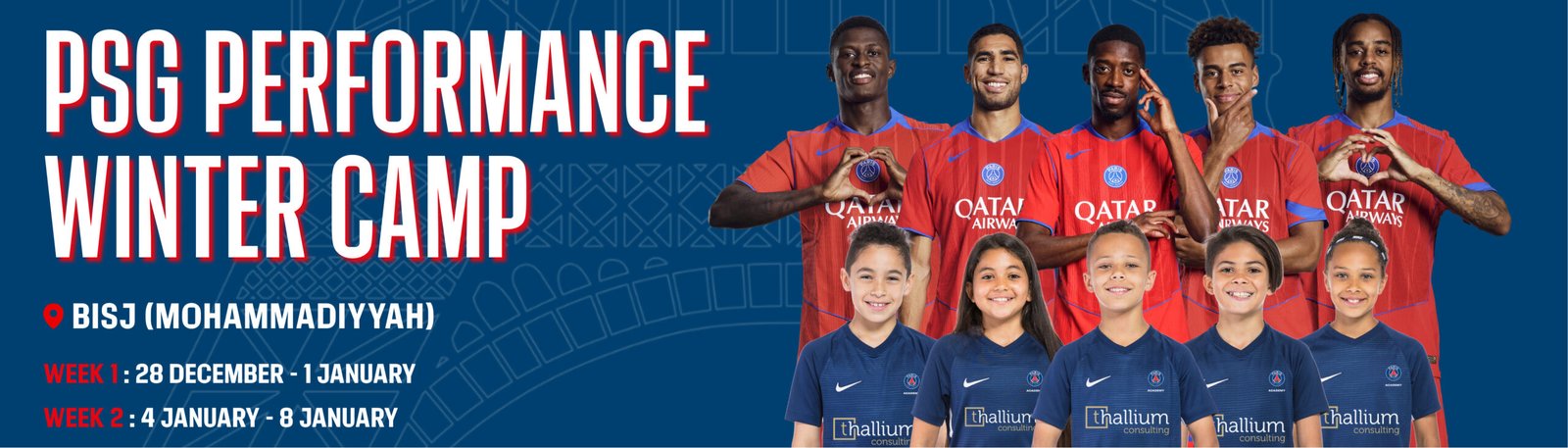 انضم إلى معسكر الأداء الشتوي الحصري لباريس سان جيرمان، المصمم للاعبين الصغار الذين يسعون للارتقاء بمستواهم إلى الدرجة التالية ضمن بيئة احترافية منظمة وممتعة.